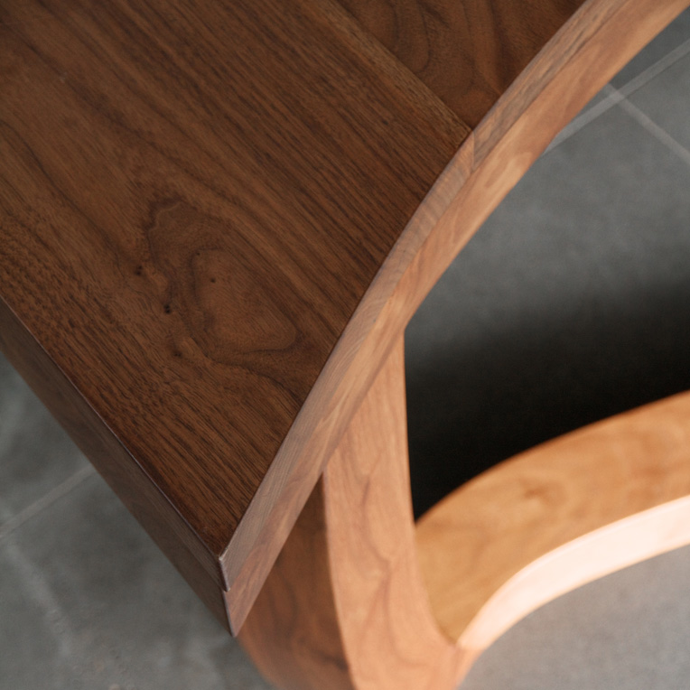 Solid American Walnut top, base made from veneered ply covered steel frame.
