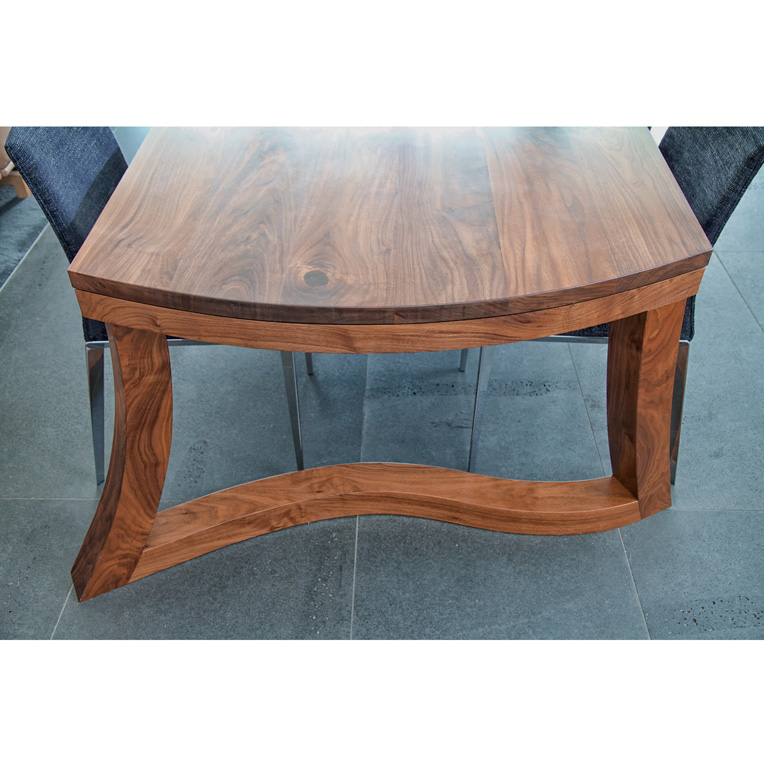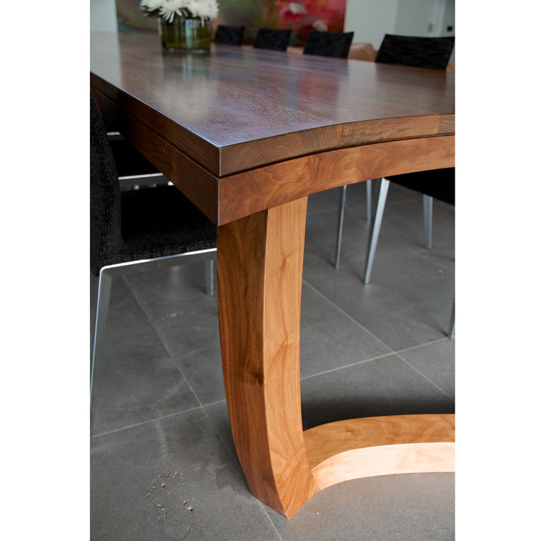 In 2013 Anton Gerner was commissioned to design and make this unique dining table for a contemporary Melbourne home. The brief was for a table to seat up to 14 people, with seating to be along the long sides of the table only. The result is this sculptural design that challenges what is possible to construct from wood. The 4.2m unsupported span and twisted legs are achieved by a hidden, engineer designed, steel frame.